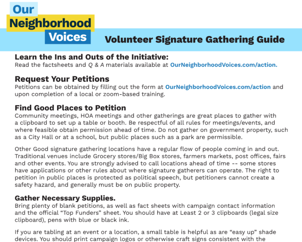 Our Neighborhood Voices Signs signature gathering our neighborhood voices