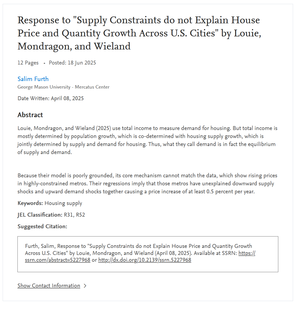 Research Paper: Supply Constraints Do Not Explain House Price and Quantity Growth Across U.S. Cities
