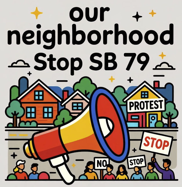 - Tell your locally elected leaders to start the process for your City Council to direct their City staff and City Attorney to gather what is needed to stop the implementation of SB 79. Email, call, or show up during their next City Council meeting,